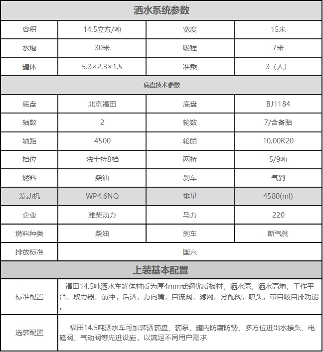 福田領(lǐng)航ES7 15方灑水車
