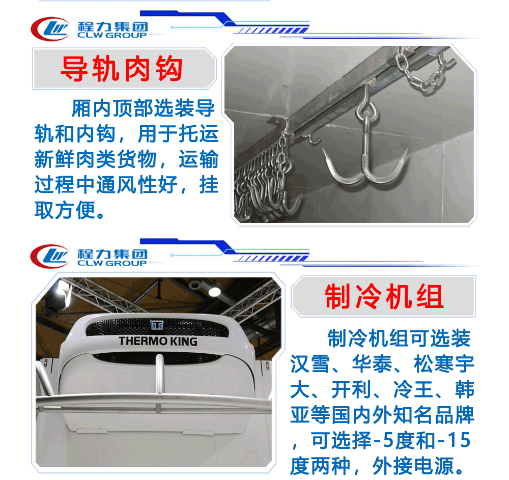 5、導軌肉鉤,運輸肉類等貨物時,方便將其掛起。6:不銹鋼貨架:用于盛放食品等專用。