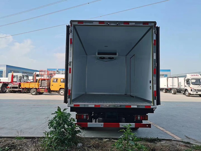 上裝配置:箱體為內外玻璃鋼板,中間保溫材料為8cm聚氨酯保溫板,鋁花紋底板,箱體鋁合金型材包邊,包角,配雙開后門,單開側門,不銹鋼門框、鎖件、鉸鏈,其余標配。